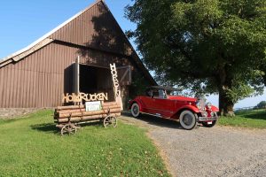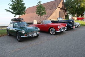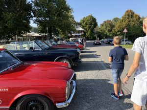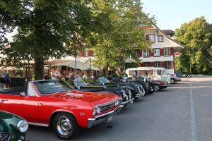 Wahrlich ein prächtiger Oldtimersonntag präsentierte sich uns schon frühmorgens, als wir aus den Federn krochen. Ohne Frühstück im Bauch setzen wir uns beizeiten in unseren alten Rekord P1 und erreichten in gemütlichem Tempo rechtzeitig den bekannten Treffpunkt Wallberg in Volketswil. Nach ausgiebiger Kaffee-, Gipfeli- und Einschreibungsrunde ergriff unser Präsident Rolf Meier kurz das Wort, erklärte den Ablauf und schon bald knatterten die ersten Motoren auf dem extra für uns abgesperrten Parkplatz. 31 Motorveteranen verschiedenster Couleur und Jahrgänge liessen ihre rund 56 Insassen eine wunderbar vorbereitete Strecke in Richtung Ostschweiz geniessen. Wir durchquerten das Tösstal, überquerten die Hulftegg und erreichten bald das Toggenburg. Dieses wurde bis nach Lichtensteig befahren, bevor wir über die Wasserfluh ins Neckertal wechselten. Die Freude über die tolle Strecke wurde untermalt von perfektem Wetter, alle irgendwie zu öffnenden Dächer und Scheiben wurden ihrer Funktion gerecht. Schlussendlich erreichten wir via St. Peterszell und Dicken das Restaurant Chäseren im Ausserrhodischen Schönengrund. Bei herrlichem Blick hinunter ins Appenzellerland platzierten wir unsere Schmuckstücke rund um die urchige Beiz mitten in den saftig grünen Hügeln, auch hier wiederum auf extra reservierten Parkflächen. Nach einem ausgiebigen Apéro auf der Terrasse, bei welchem u.a. Benzin- und Oldtimergeschichten gewälzt wurden, bedienten uns die fleissige Wirtin und ihre Kolleginnen persönlich mit feinster Appenzeller Küche und zum Schluss mit dem fulminanten Dessert, einem Biberliparfait. Viel später als gedacht löste sich die angeregte und fröhliche Gesellschaft auf und die Veteranen nahmen ihren jeweiligen Heimweg in verschiedene Himmelsrichtungen unter die Räder. Ein herzlicher Dank an dieser Stelle im Namen aller Teilnehmenden an diejenigen, die uns diesen Prachtstag ermöglicht haben. Die Vorfreude auf den nächsten SMVC-Anlass ist sehr gross!