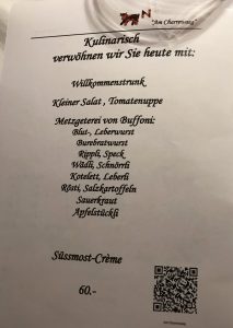 Nach der überaus erfolgreichen Metzgete, vom letzten Jahr, bim Charrewaeg in Illnau Effretikon, liessen wir uns auch dieses Jahr mit dem Feinstem verwöhnen. Die Lokalität bim Charrewaeg ist ein altes Bauernhaus. Der Stall, die Scheune und Nebengebäude mit viel Fantasie umgebaut und mit unglaublich vielen Gegenständen eingerichtet. Es sind wunderbare, heimelige lauschige Räume entstanden. In dieser Umgebung kann man sich nur noch wohlfühlen.