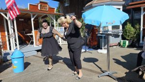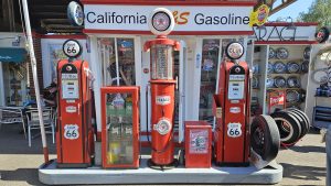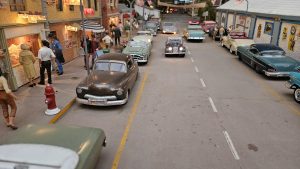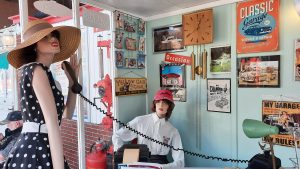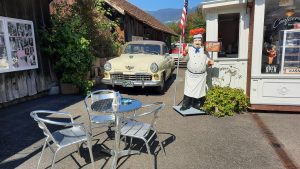 Banane an der Wand und historische Fahrzeuge