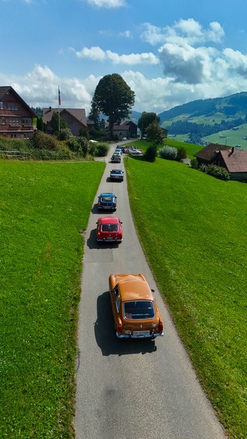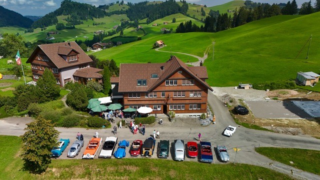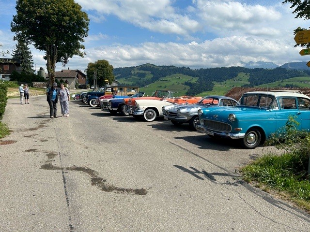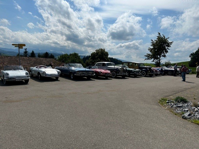 Wahrlich ein prächtiger Oldtimersonntag präsentierte sich uns schon frühmorgens, als wir aus den Federn krochen. Ohne Frühstück im Bauch setzen wir uns beizeiten in unseren alten Rekord P1 und erreichten in gemütlichem Tempo rechtzeitig den bekannten Treffpunkt Wallberg in Volketswil. Nach ausgiebiger Kaffee-, Gipfeli- und Einschreibungsrunde ergriff unser Präsident Rolf Meier kurz das Wort, erklärte den Ablauf und schon bald knatterten die ersten Motoren auf dem extra für uns abgesperrten Parkplatz. 31 Motorveteranen verschiedenster Couleur und Jahrgänge liessen ihre rund 56 Insassen eine wunderbar vorbereitete Strecke in Richtung Ostschweiz geniessen. Wir durchquerten das Tösstal, überquerten die Hulftegg und erreichten bald das Toggenburg. Dieses wurde bis nach Lichtensteig befahren, bevor wir über die Wasserfluh ins Neckertal wechselten. Die Freude über die tolle Strecke wurde untermalt von perfektem Wetter, alle irgendwie zu öffnenden Dächer und Scheiben wurden ihrer Funktion gerecht. Schlussendlich erreichten wir via St. Peterszell und Dicken das Restaurant Chäseren im Ausserrhodischen Schönengrund. Bei herrlichem Blick hinunter ins Appenzellerland platzierten wir unsere Schmuckstücke rund um die urchige Beiz mitten in den saftig grünen Hügeln, auch hier wiederum auf extra reservierten Parkflächen. Nach einem ausgiebigen Apéro auf der Terrasse, bei welchem u.a. Benzin- und Oldtimergeschichten gewälzt wurden, bedienten uns die fleissige Wirtin und ihre Kolleginnen persönlich mit feinster Appenzeller Küche und zum Schluss mit dem fulminanten Dessert, einem Biberliparfait. Viel später als gedacht löste sich die angeregte und fröhliche Gesellschaft auf und die Veteranen nahmen ihren jeweiligen Heimweg in verschiedene Himmelsrichtungen unter die Räder. Ein herzlicher Dank an dieser Stelle im Namen aller Teilnehmenden an diejenigen, die uns diesen Prachtstag ermöglicht haben. Die Vorfreude auf den nächsten SMVC-Anlass ist sehr gross!