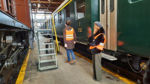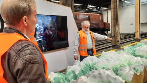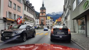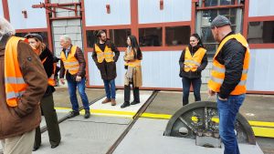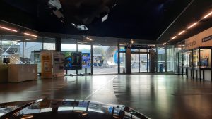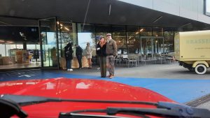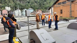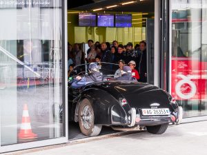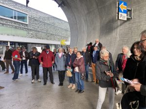 Wir konnten zum Start dieser Ausfahrt durch den Haupteingang des Verkehrshauses fahren. Das ist jedes Mal ein Ereignis. Bei der der Einfahrt von Ruth Iseli und mir um 08:46 Uhr war das Foyer leer. Bei der Ausfahrt um 09:54 Uhr -siehe Foto weiter unten- bestaunten uns viele BesucherInnen. Weiter zu Bericht und Live-Bilder von Ruedi Müller Link