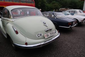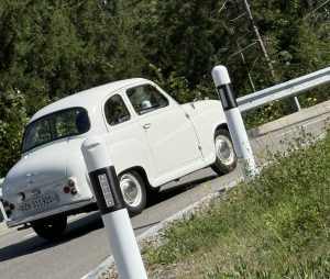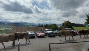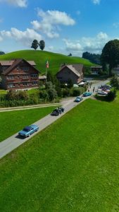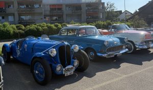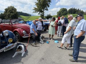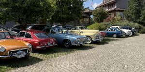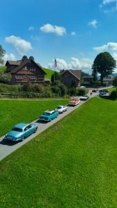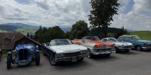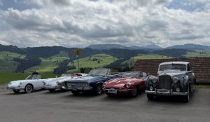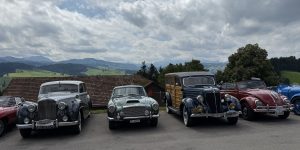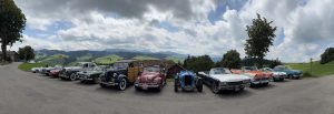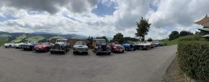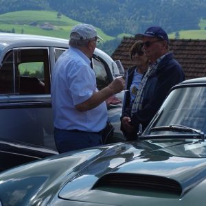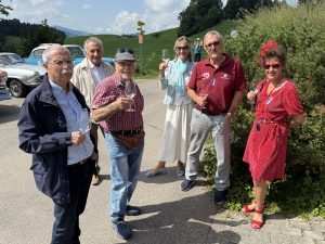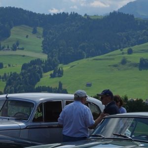 Wahrlich ein prächtiger Oldtimersonntag präsentierte sich uns schon frühmorgens, als wir aus den Federn krochen. Ohne Frühstück im Bauch setzen wir uns beizeiten in unseren alten Rekord P1 und erreichten in gemütlichem Tempo rechtzeitig den bekannten Treffpunkt Wallberg in Volketswil. Nach ausgiebiger Kaffee-, Gipfeli- und Einschreibungsrunde ergriff unser Präsident Rolf Meier kurz das Wort, erklärte den Ablauf und schon bald knatterten die ersten Motoren auf dem extra für uns abgesperrten Parkplatz. 31 Motorveteranen verschiedenster Couleur und Jahrgänge liessen ihre rund 56 Insassen eine wunderbar vorbereitete Strecke in Richtung Ostschweiz geniessen. Wir durchquerten das Tösstal, überquerten die Hulftegg und erreichten bald das Toggenburg. Dieses wurde bis nach Lichtensteig befahren, bevor wir über die Wasserfluh ins Neckertal wechselten. Die Freude über die tolle Strecke wurde untermalt von perfektem Wetter, alle irgendwie zu öffnenden Dächer und Scheiben wurden ihrer Funktion gerecht. Schlussendlich erreichten wir via St. Peterszell und Dicken das Restaurant Chäseren im Ausserrhodischen Schönengrund. Bei herrlichem Blick hinunter ins Appenzellerland platzierten wir unsere Schmuckstücke rund um die urchige Beiz mitten in den saftig grünen Hügeln, auch hier wiederum auf extra reservierten Parkflächen. Nach einem ausgiebigen Apéro auf der Terrasse, bei welchem u.a. Benzin- und Oldtimergeschichten gewälzt wurden, bedienten uns die fleissige Wirtin und ihre Kolleginnen persönlich mit feinster Appenzeller Küche und zum Schluss mit dem fulminanten Dessert, einem Biberliparfait. Viel später als gedacht löste sich die angeregte und fröhliche Gesellschaft auf und die Veteranen nahmen ihren jeweiligen Heimweg in verschiedene Himmelsrichtungen unter die Räder. Ein herzlicher Dank an dieser Stelle im Namen aller Teilnehmenden an diejenigen, die uns diesen Prachtstag ermöglicht haben. Die Vorfreude auf den nächsten SMVC-Anlass ist sehr gross!